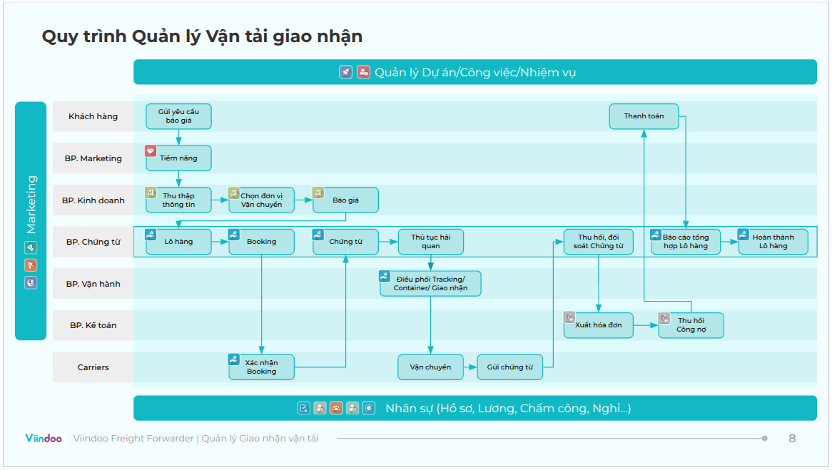 Viindoo’s Freight Forwarder application is a comprehensive solution that helps businesses operating in the logistics and freight forwarding industry to efficiently manage the entire cargo transportation process. From creating quotations, managing shipments, bookings, tracking costs to updating shipment progress, everything is integrated into a unified system.