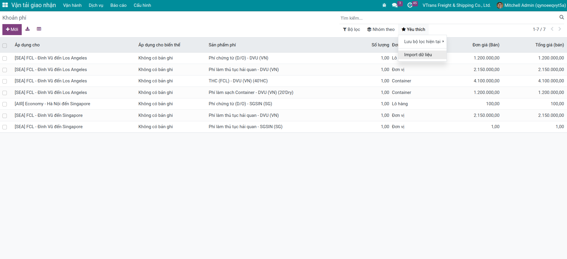 Menu path: Freight Forwarder > Services > Miscellaneous Fees > Fees.