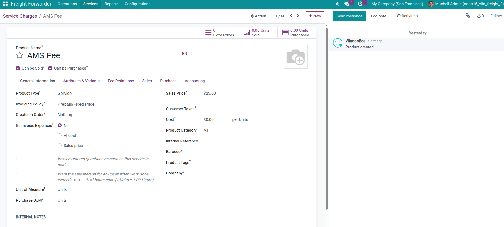 Access Freight Forwarder > Configuration > Fee Definitions.