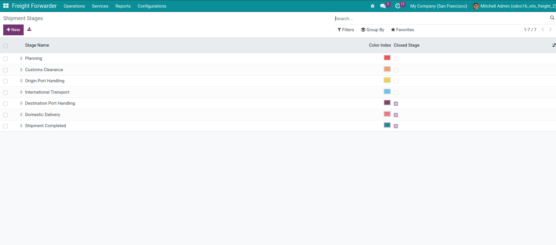Access Freight Forwarder > Configuration > Other > Shipment Stages