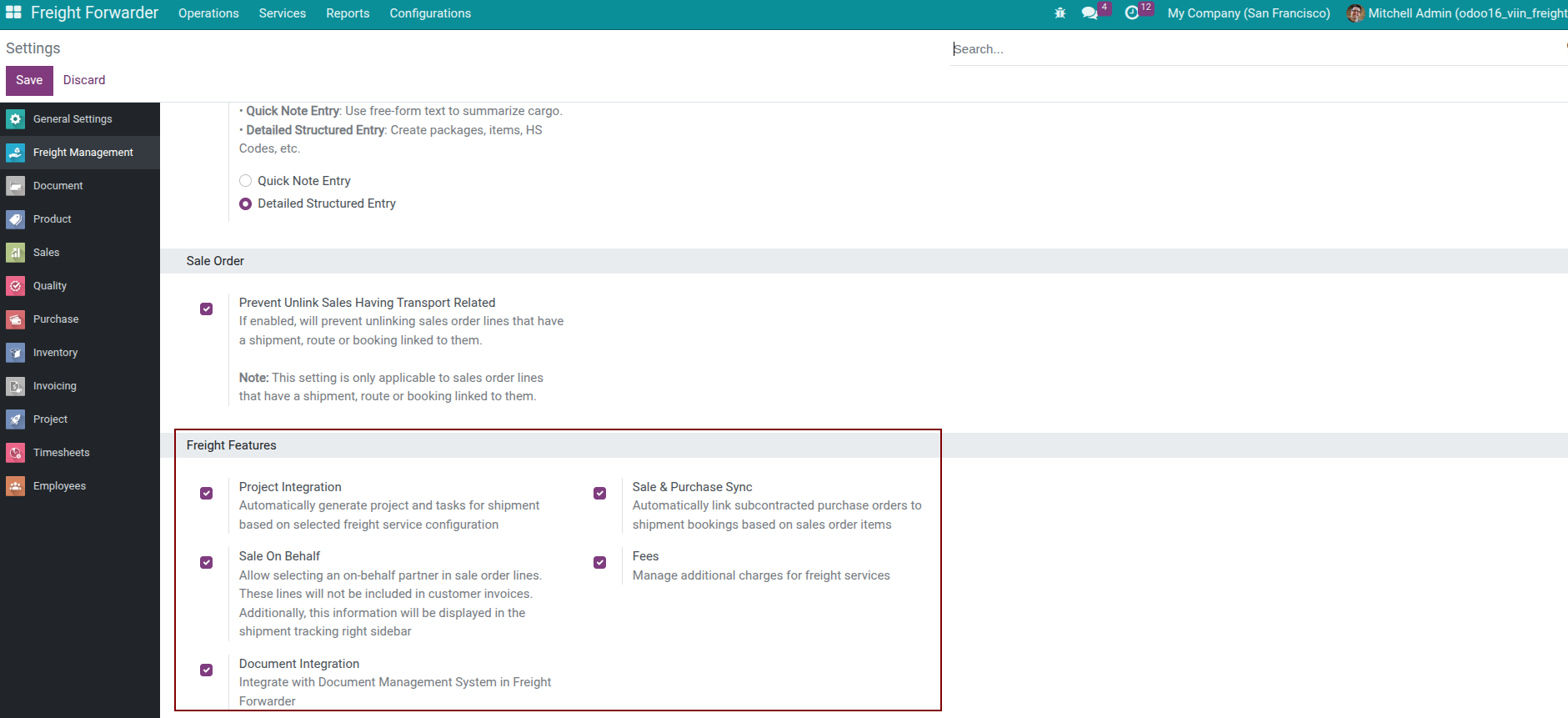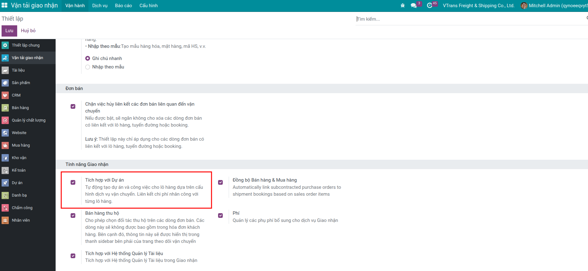 Trong Freight Features, chọn Freight Project & Timesheet.