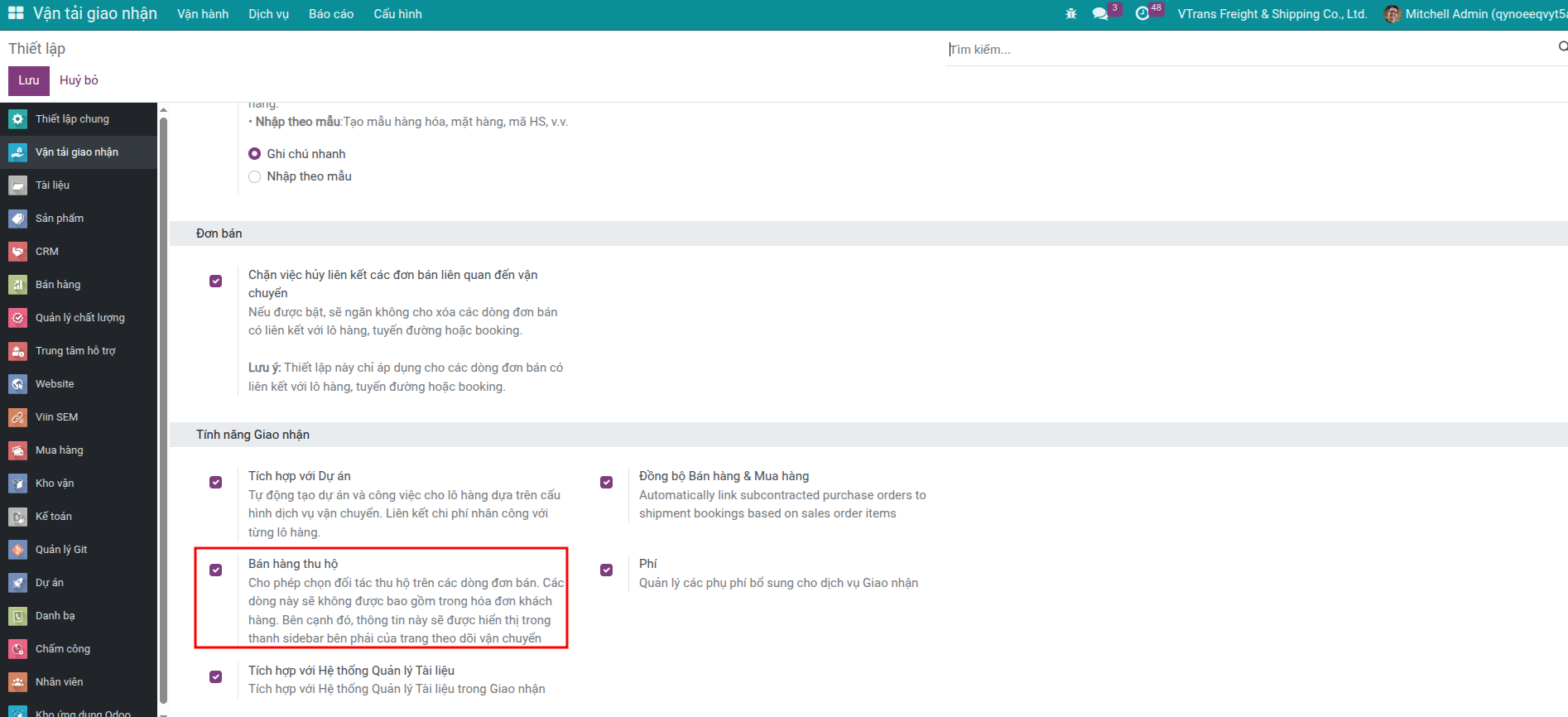 Shipment sales quotations – đánh dấu dòng thu hộ ngay từ bước báo giá.