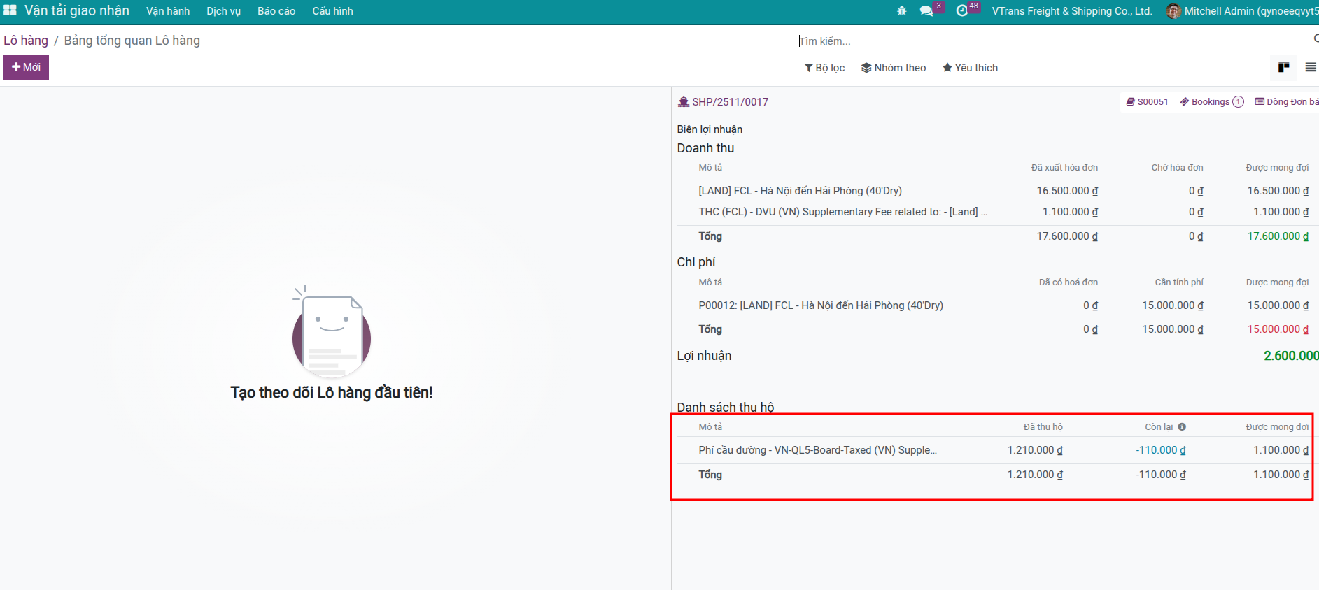 Khoản thu/chi hộ có ảnh hưởng lợi nhuận không? Không. Chúng ghi nhận vào tài khoản phải thu/trả riêng và loại khỏi doanh thu/chi phí. Lợi nhuận chỉ xét doanh thu Freight trừ chi phí của bạn.