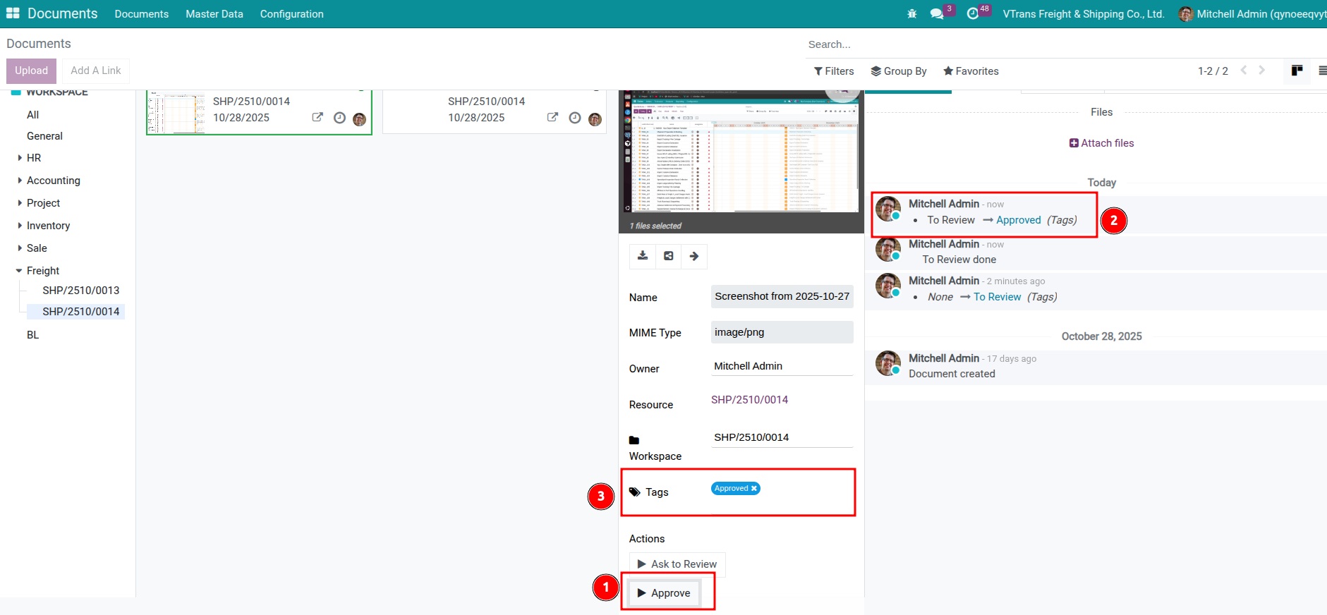 Tích hợp Viindoo Documents cung cấp cho đội Freight một workspace chung với tag, quyền truy cập và tự động hóa tối ưu cho logistics quốc tế.