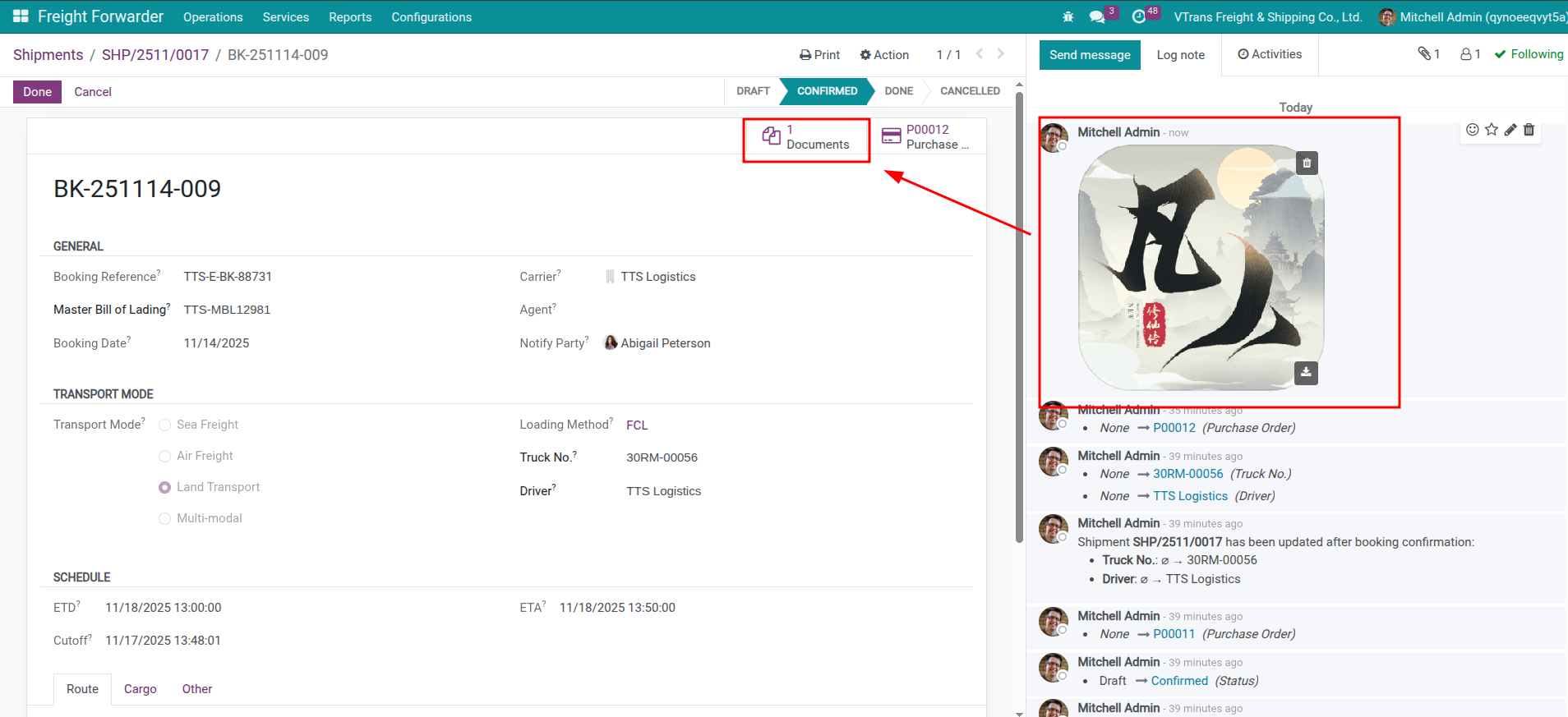 Tài liệu upload từ Booking cũng xem được ở Shipment, giúp có một timeline hợp nhất.