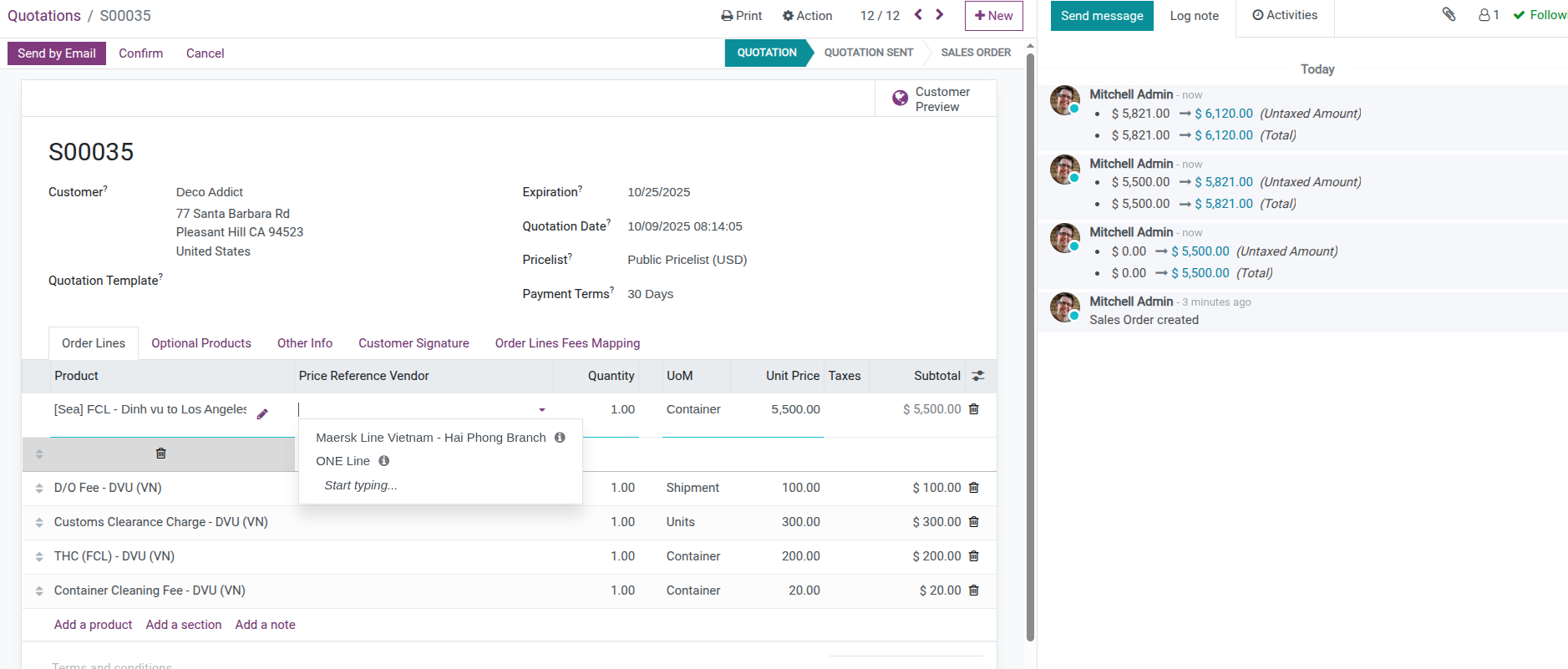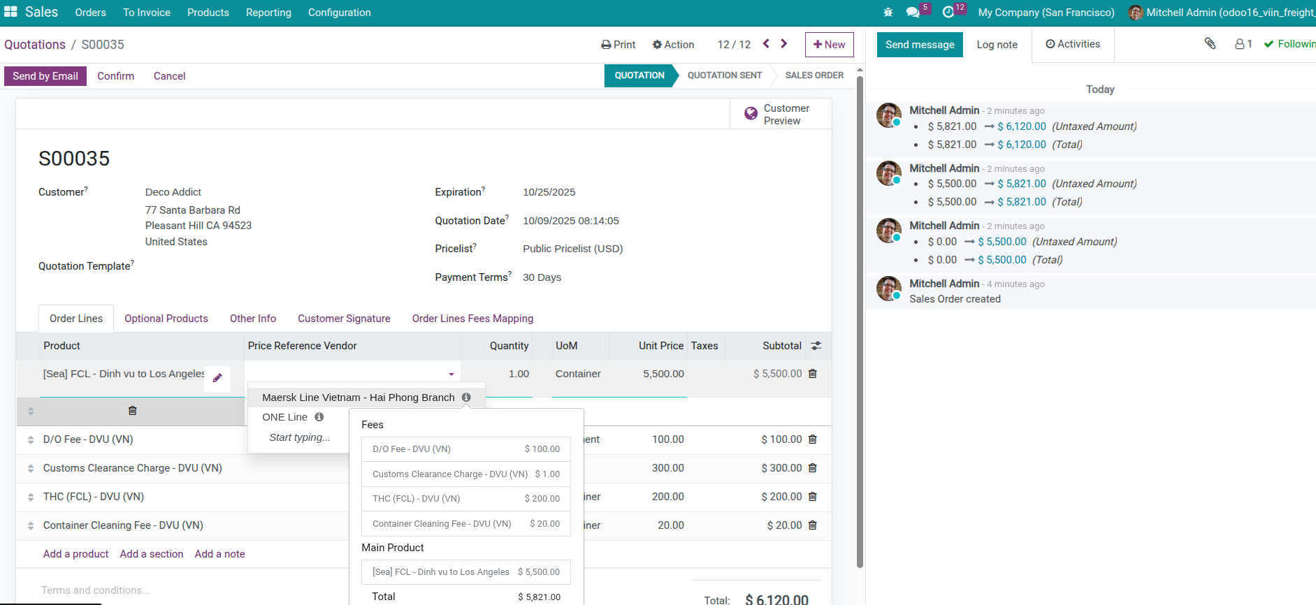 Đôi khi doanh nghiệp đã nhận hàng và triển khai vận chuyển trước khi có báo giá chính thức. Ví dụ: