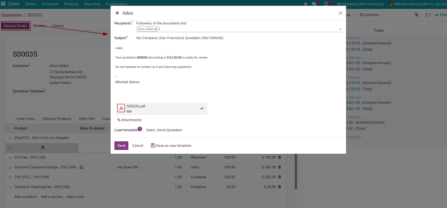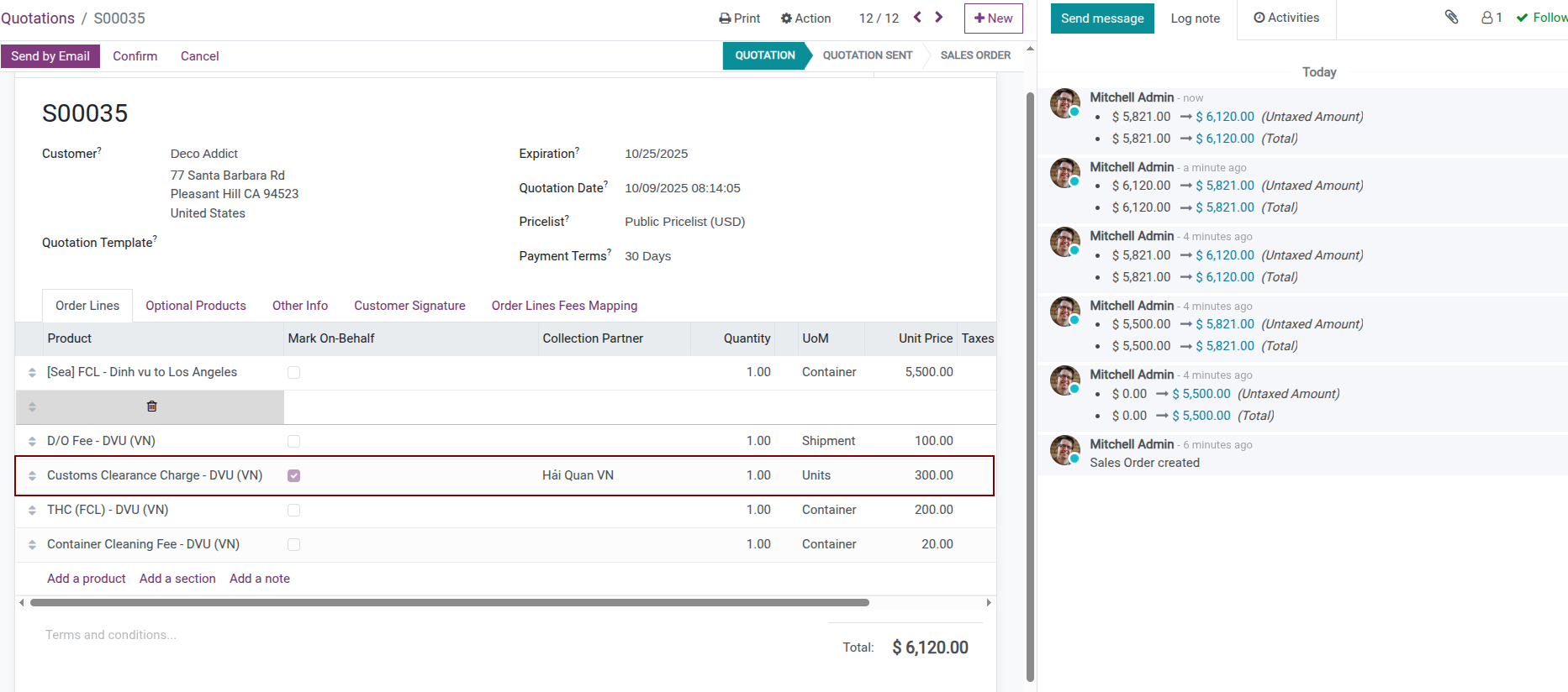 Khi tạo báo giá, hệ thống tự áp dụng pricelist của khách.
