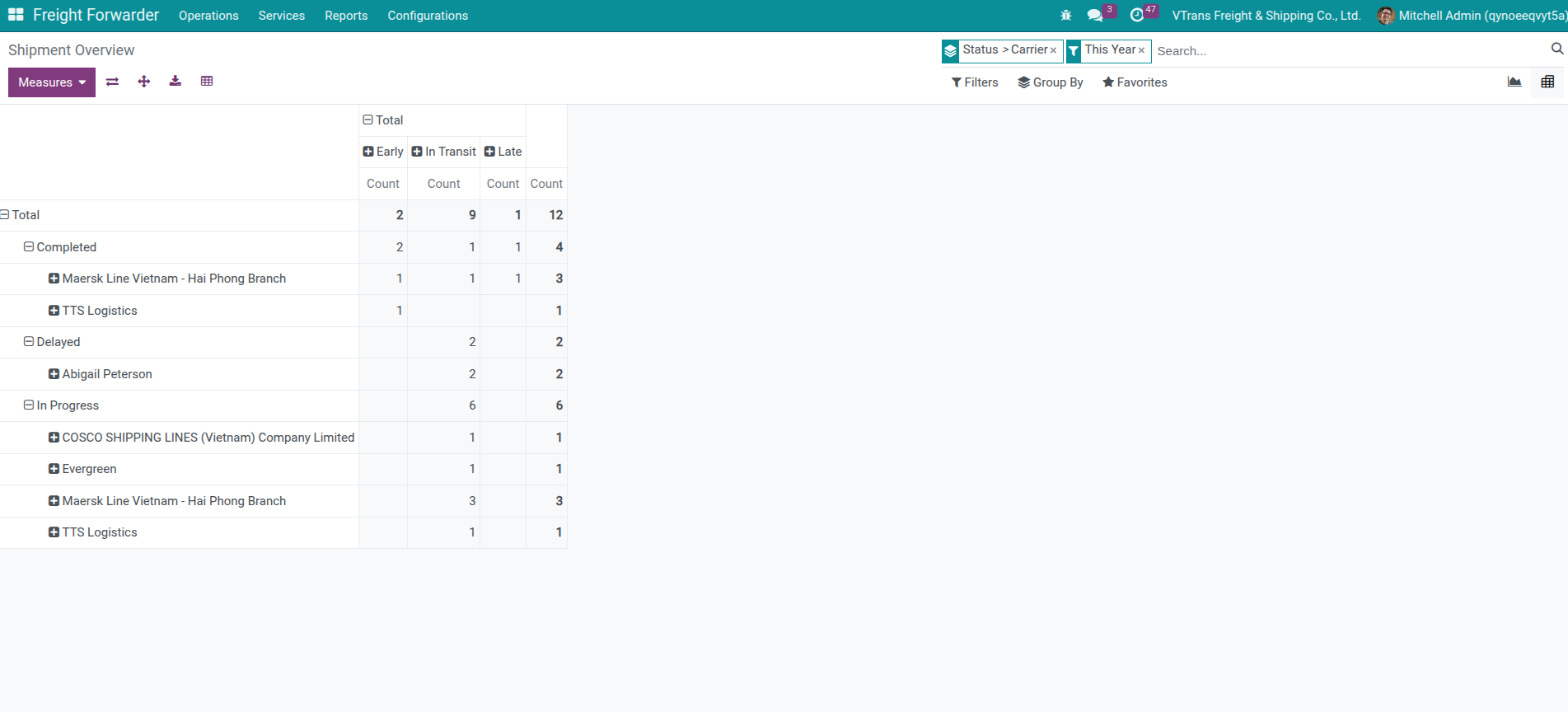 Một Shipment ở stage Transport có thể status On Track (đúng giờ) hoặc Off Track (delay).