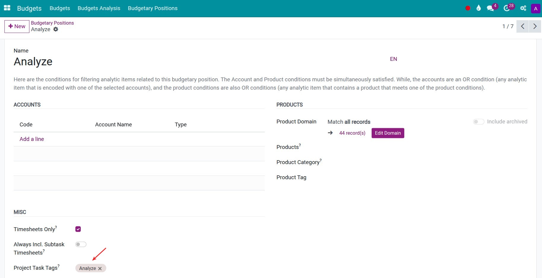 To analyze the project’s actual costs, all the expenses records need to satisfy all budgetary position and analytics accounts. It means you need to state the analytic accounts, and these expenses need to meet the budgetary positions’ rules.