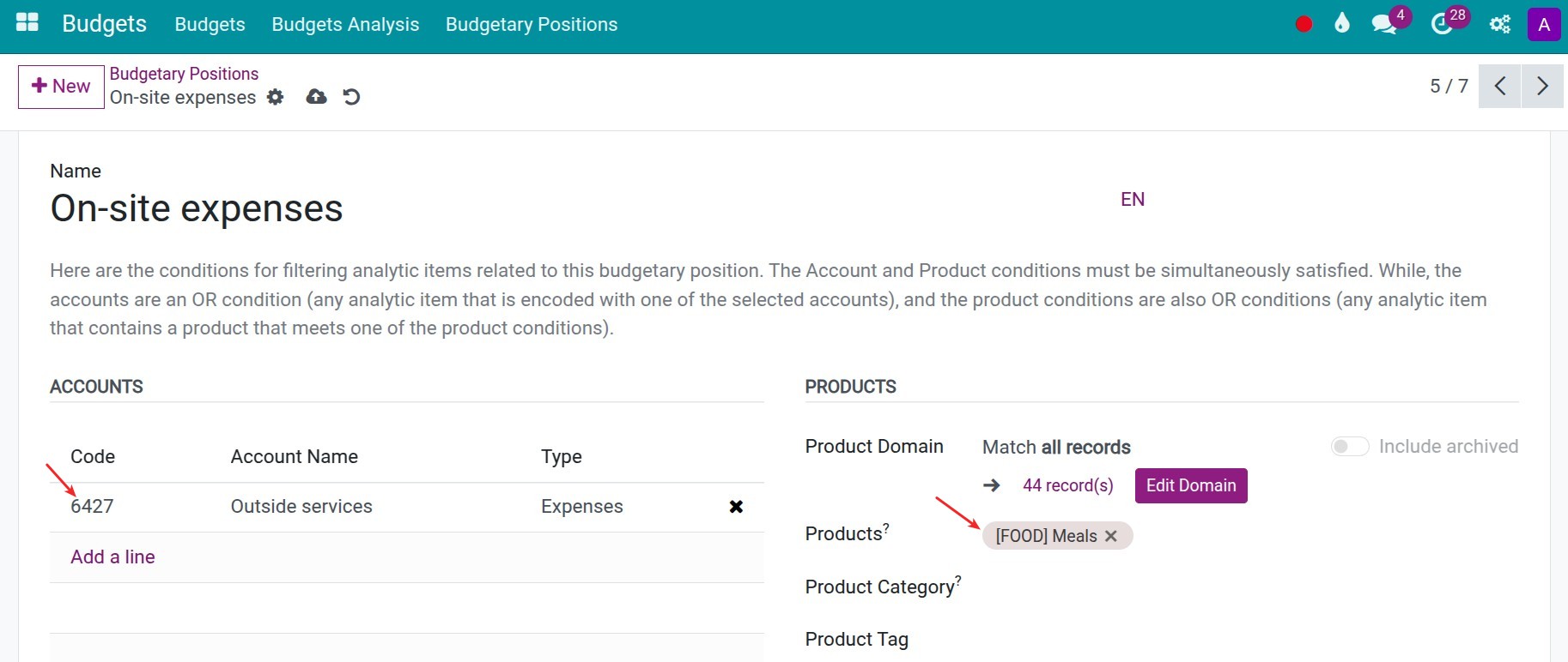 Budgetary position for analyzing the outernal expenses: Using the rules of Products or Products Category or Products Tags or Accounts.
