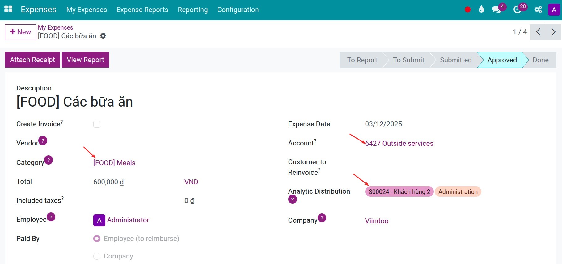 Whenever the expenses arise with the above products, it will be automatically gathered to the project budget.