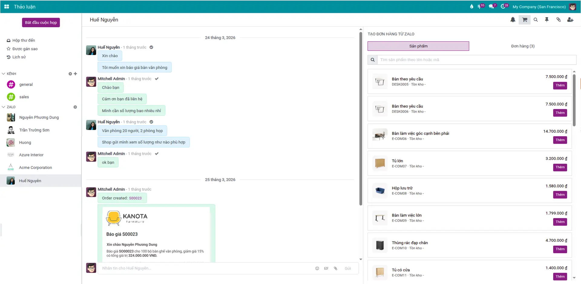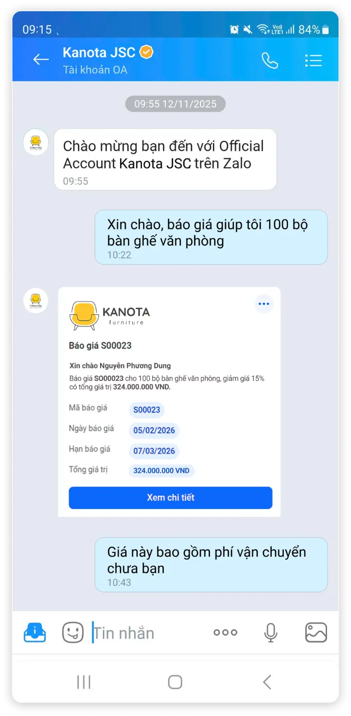 Gửi báo giá trực tiếp trong cửa sổ chat.