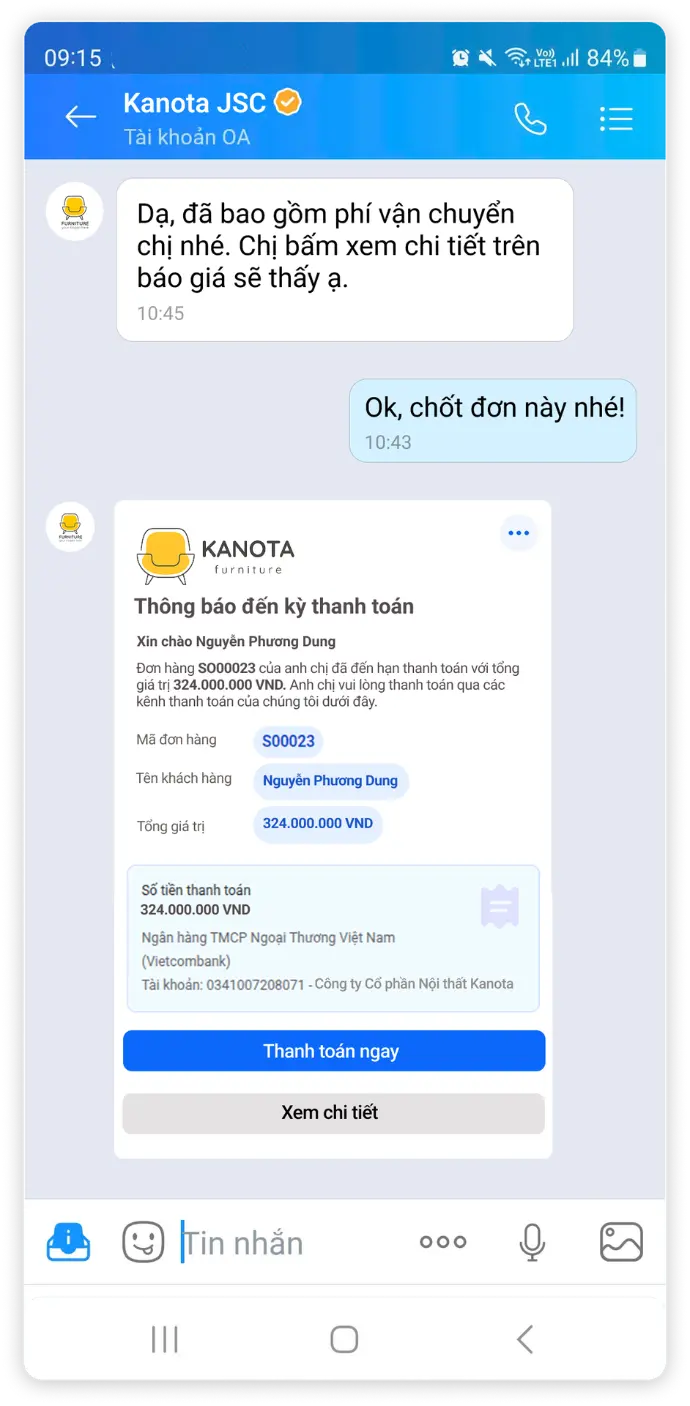 - Nhắc lịch hóa đơn tự động: Thông báo định kỳ về các khoản nợ đến hạn, giúp khách hàng không bỏ lỡ thời hạn.