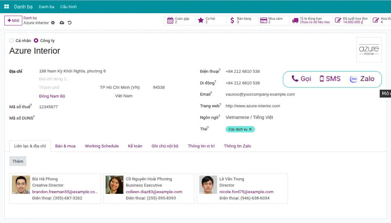 Chỉ cần nhấn vào biểu tượng Zalo trên các danh bạ để bắt đầu tương tác với khách hàng thông qua nền tảng quen thuộc.